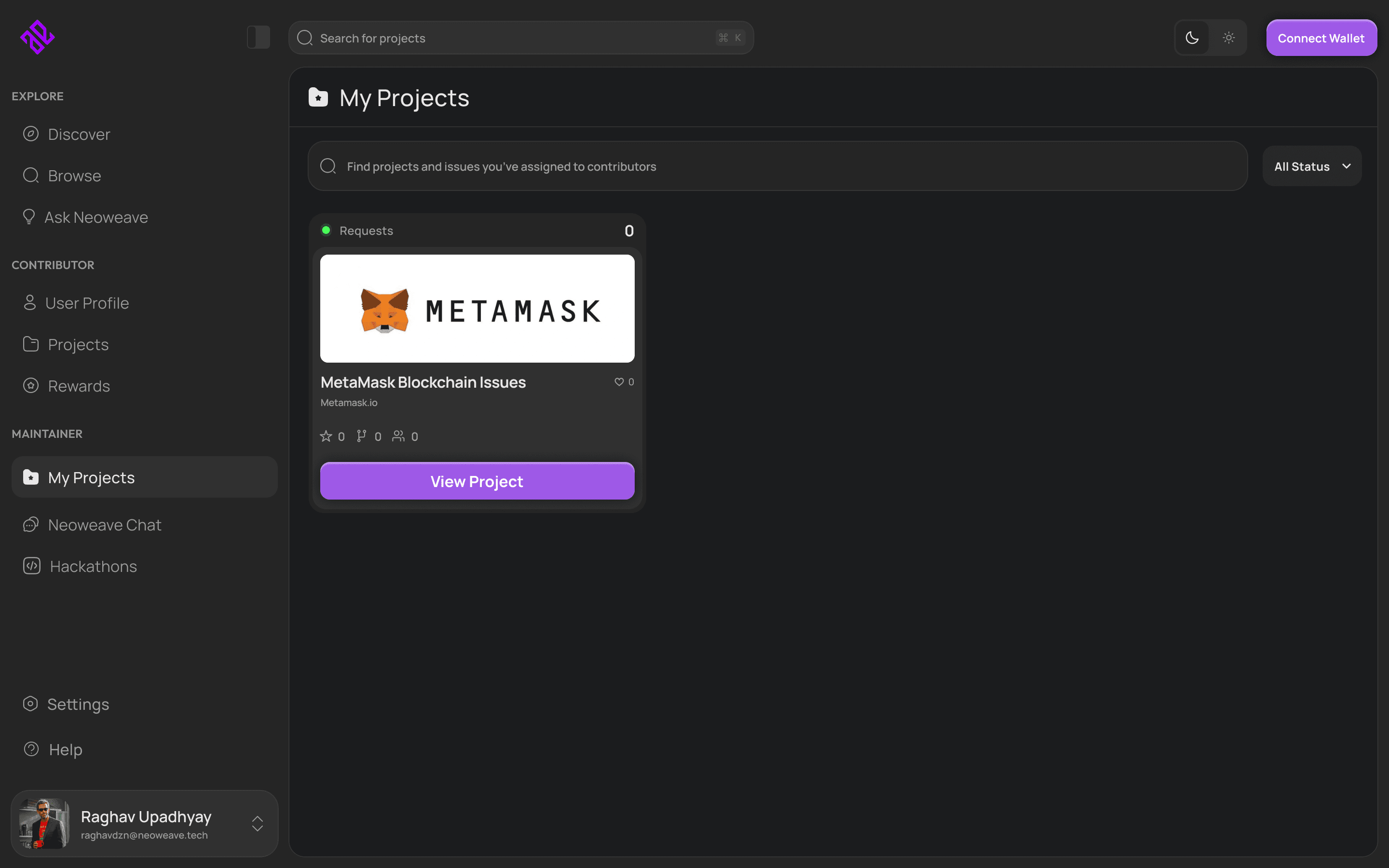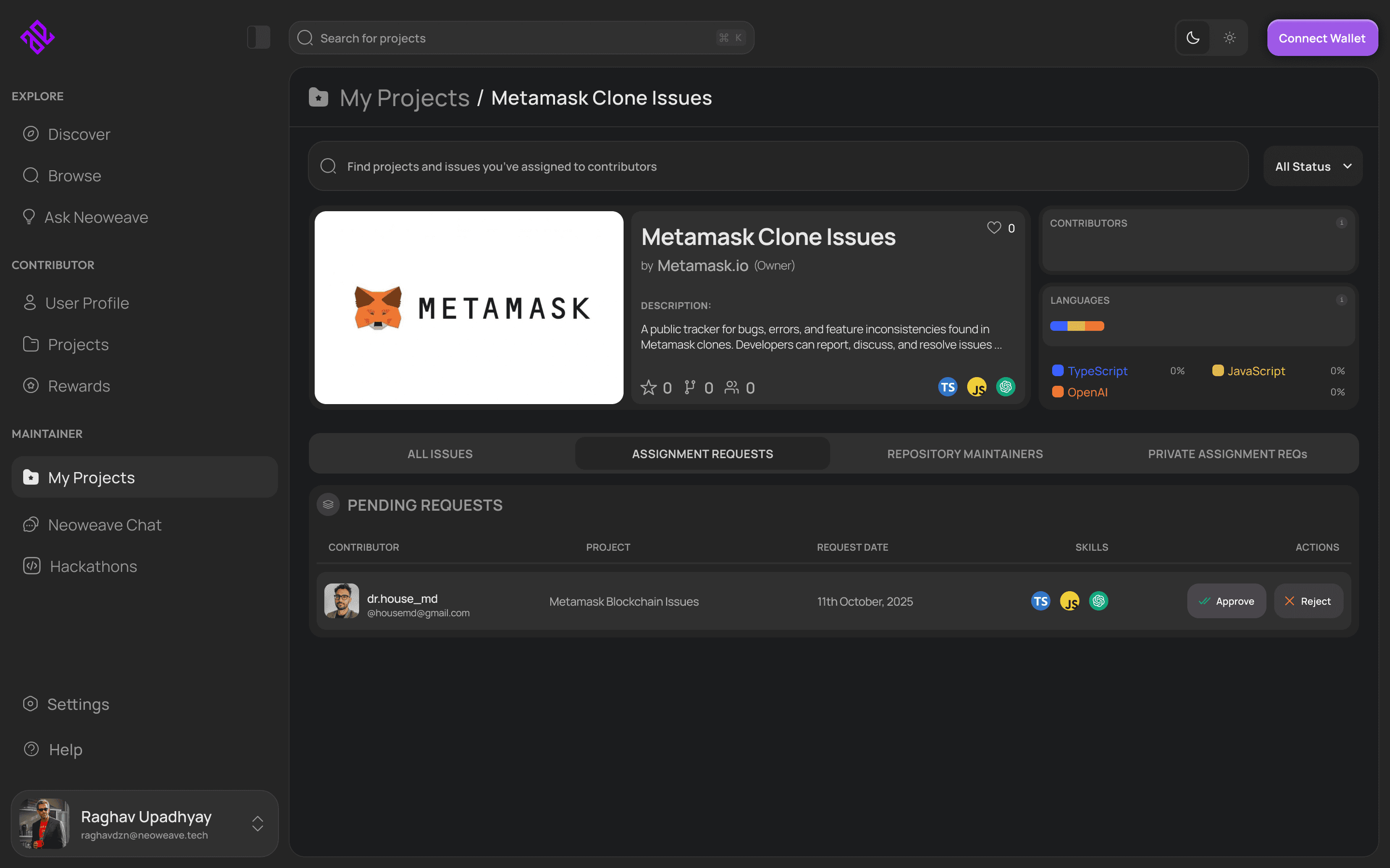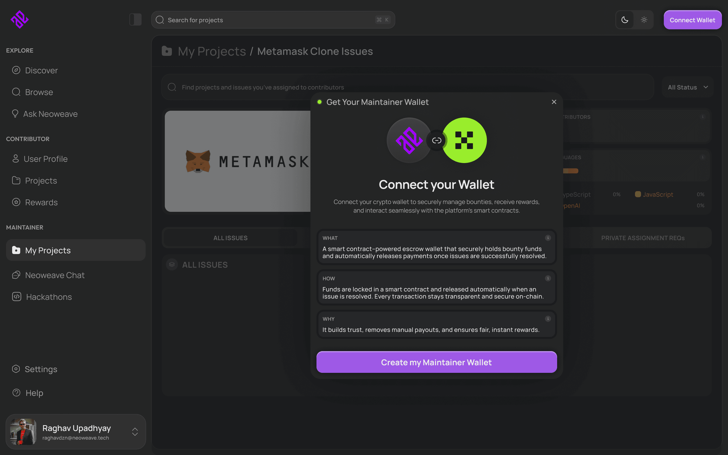 Create, manage, and track all maintainer-owned repositories, issues, and active bounties in one place.
