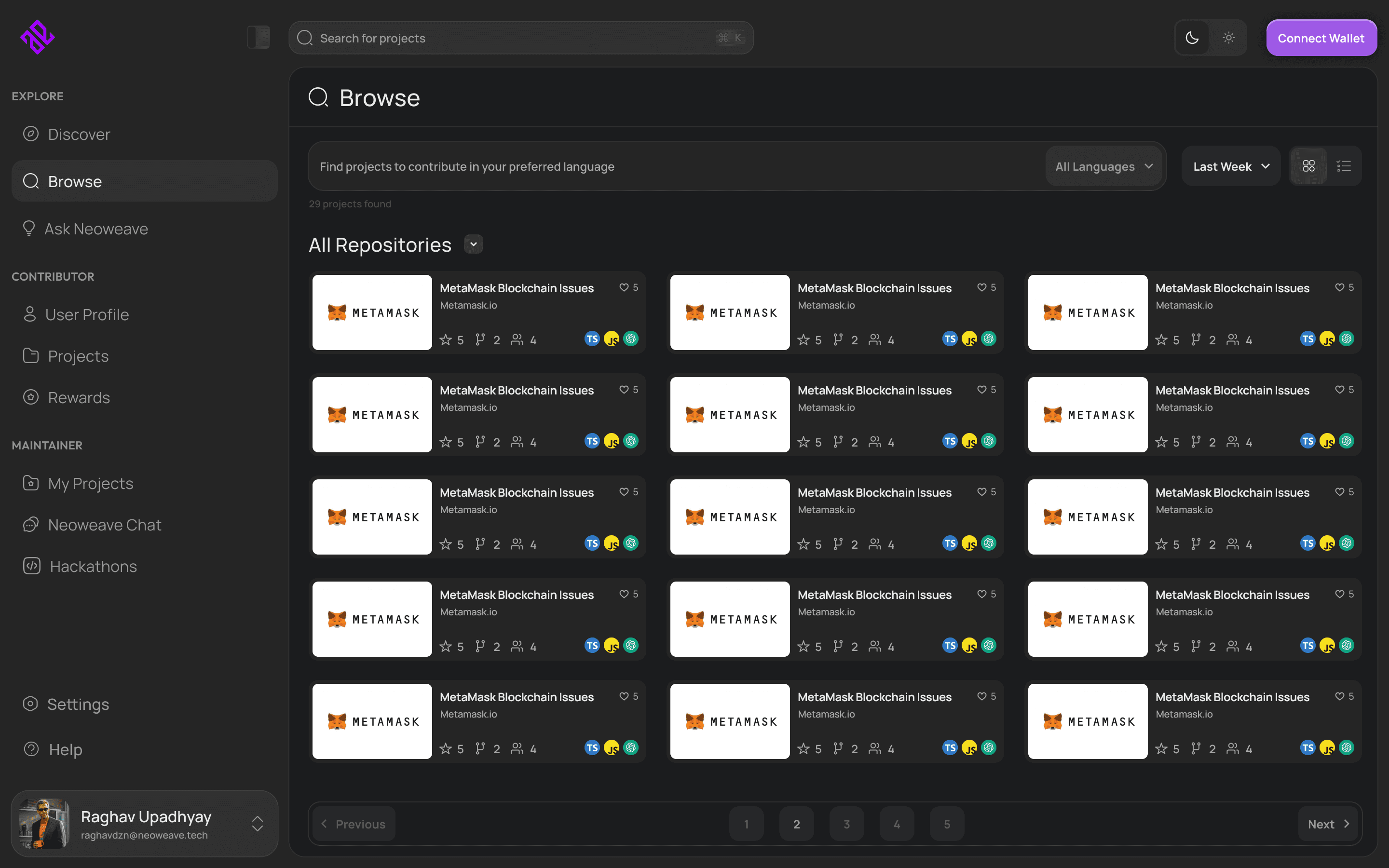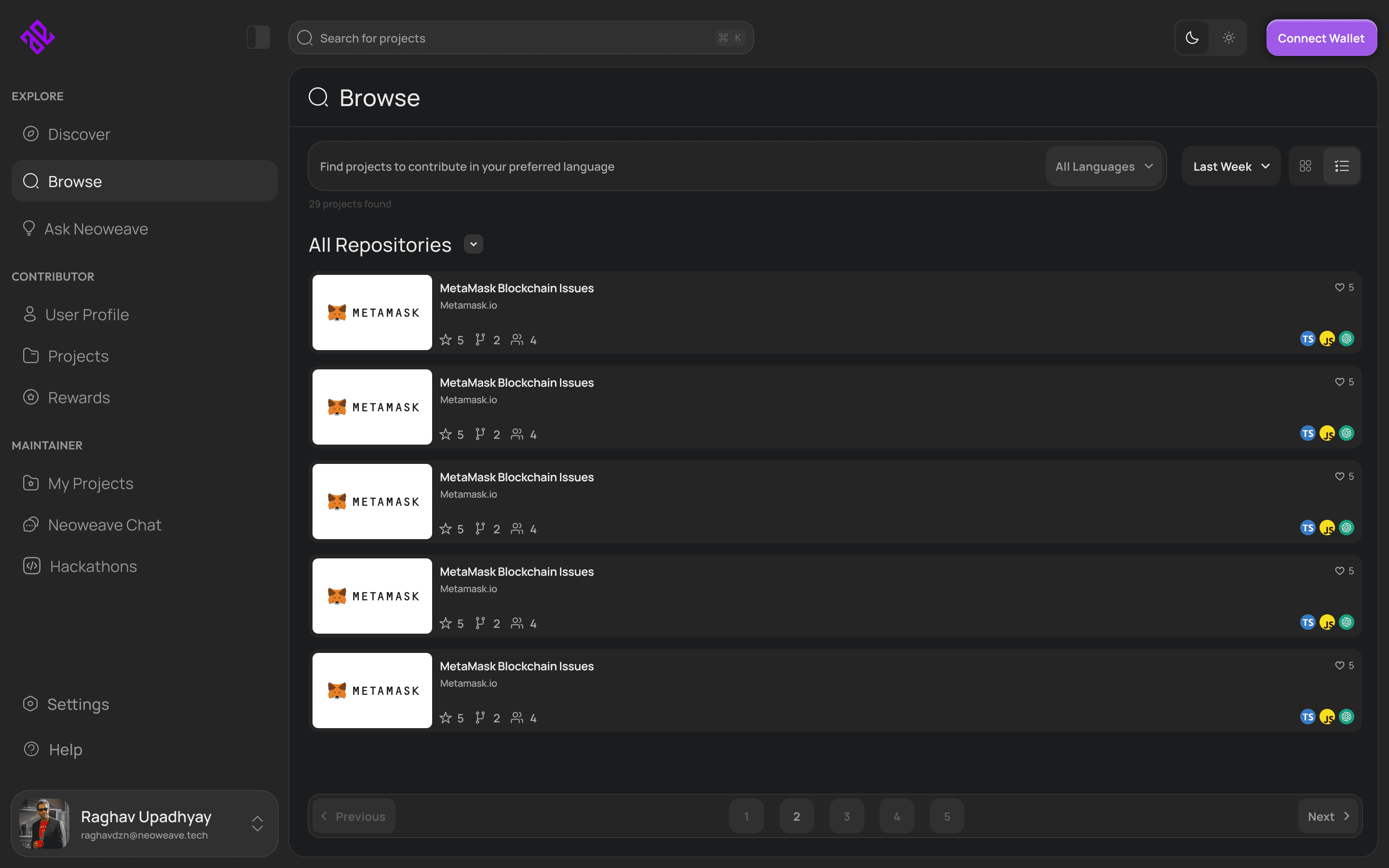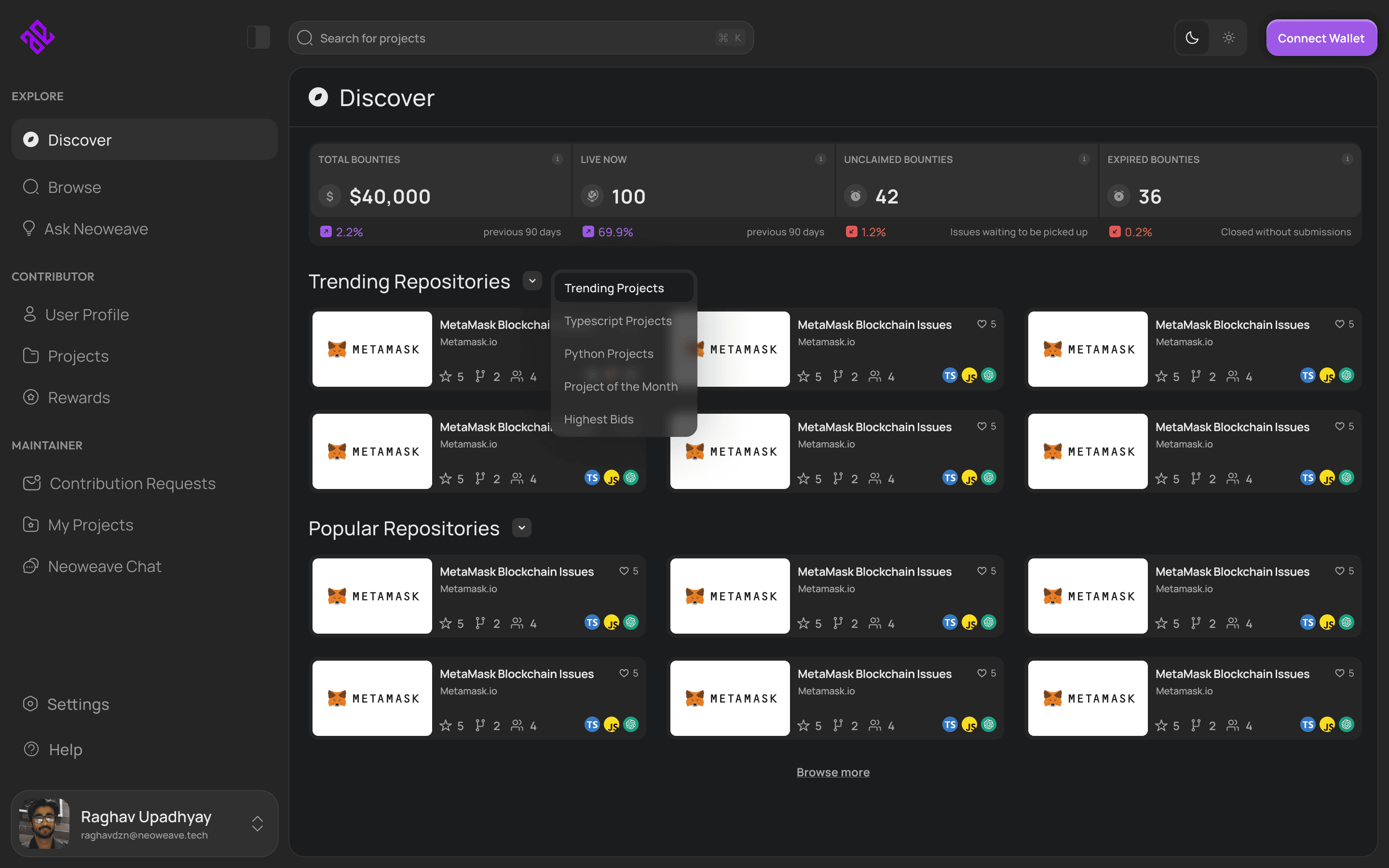Clear information hierarchy and structured navigation helped developers find relevant bounties and projects faster