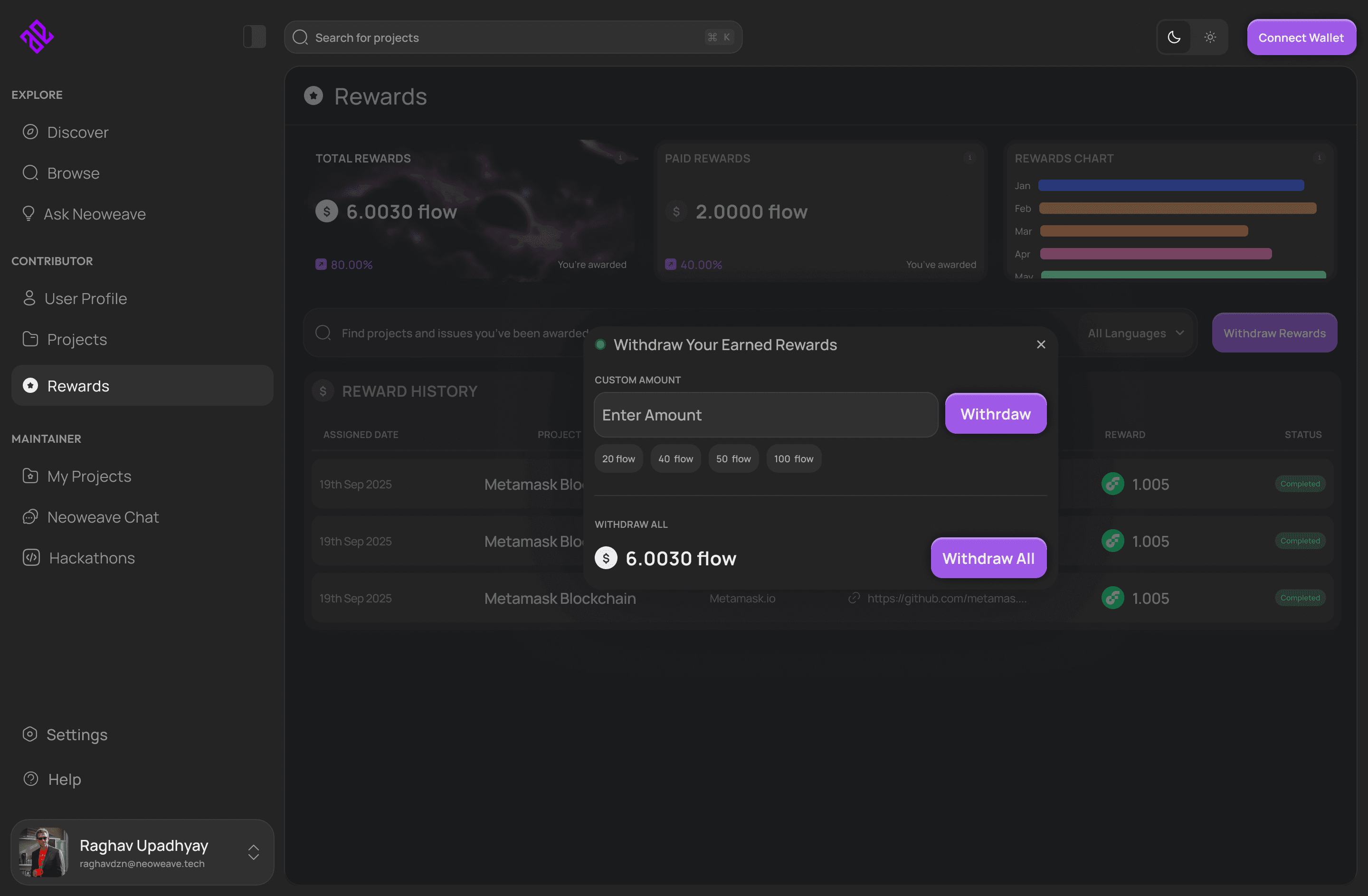 See earned crypto, pending payouts, and contribution-based incentives transparently.