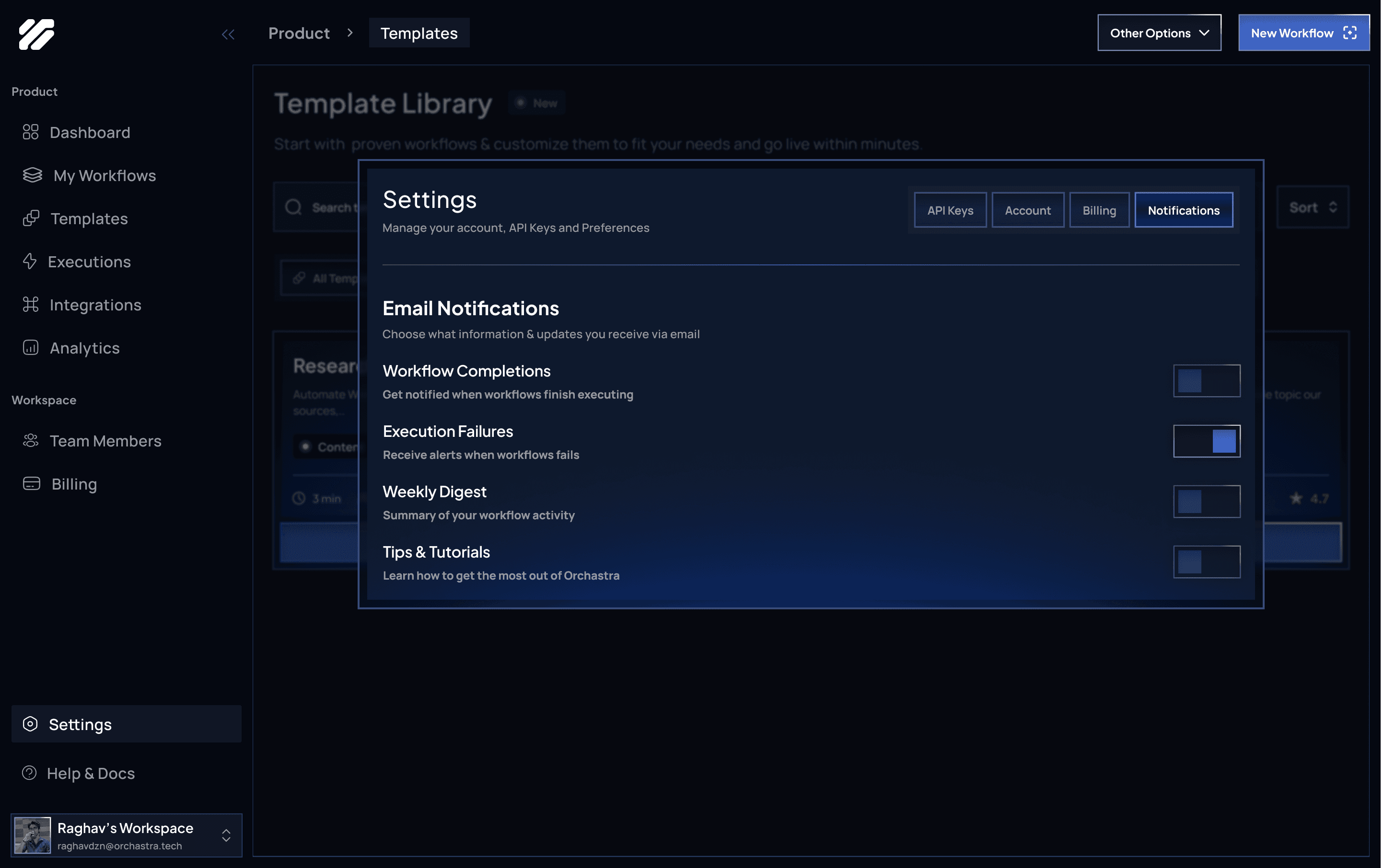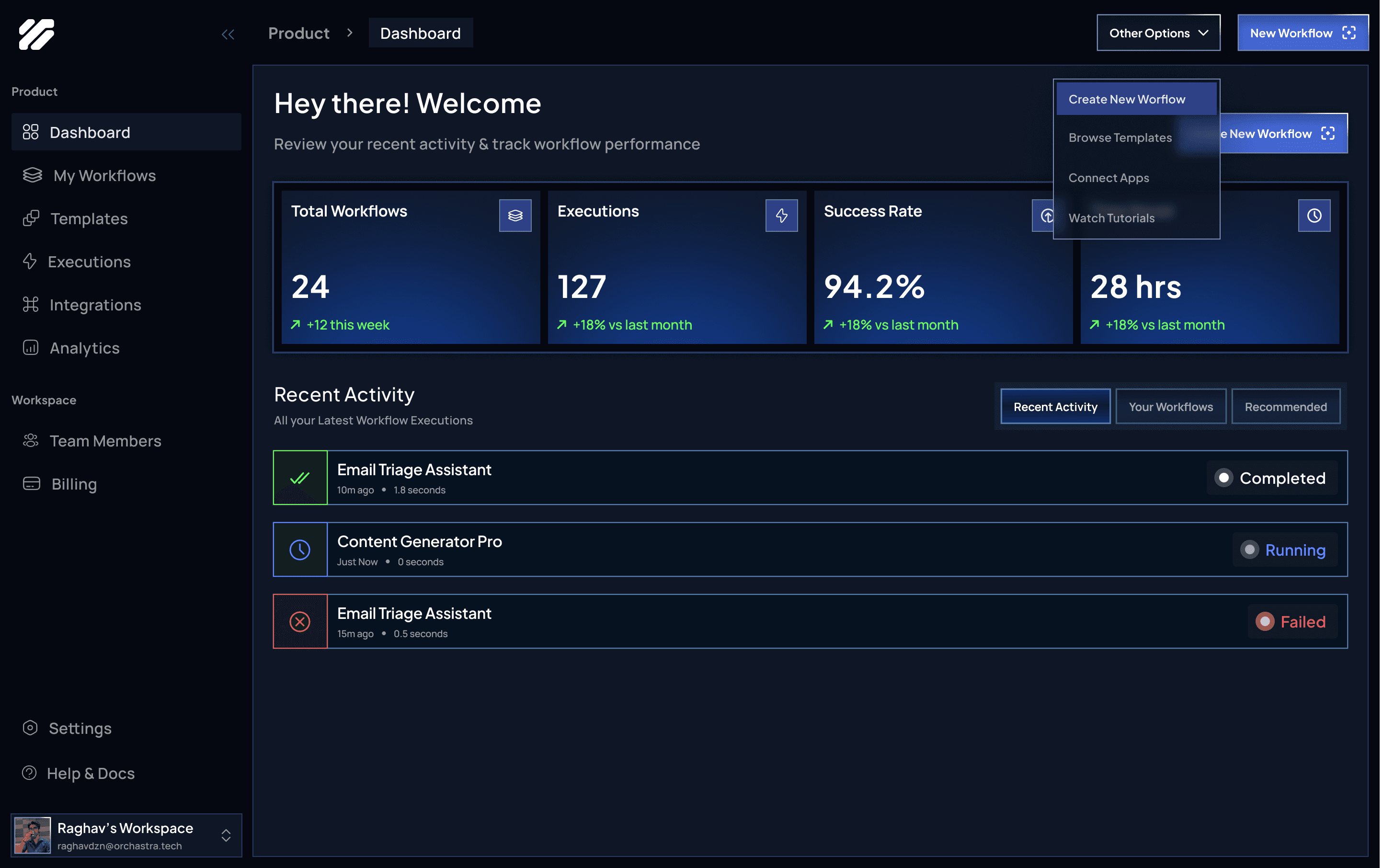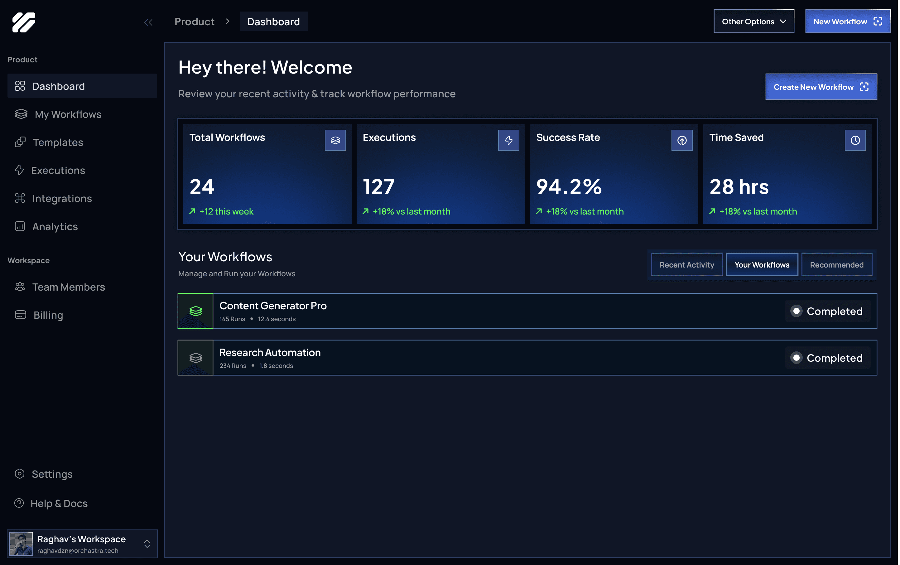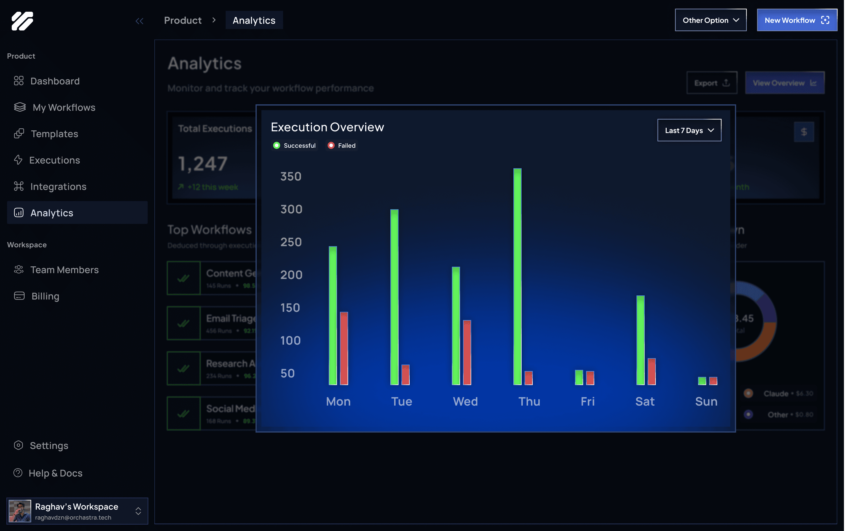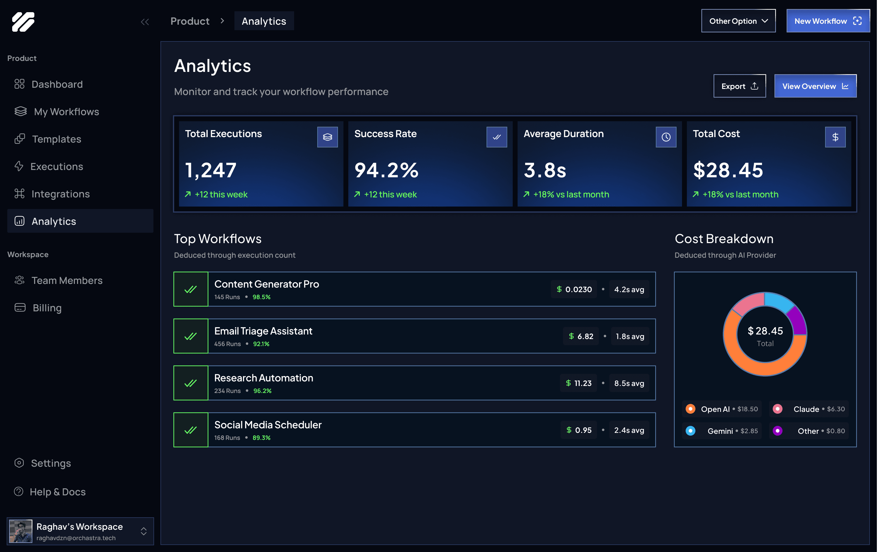 Track performance, executions, and impact across all your workflows in one centralized dashboard.
