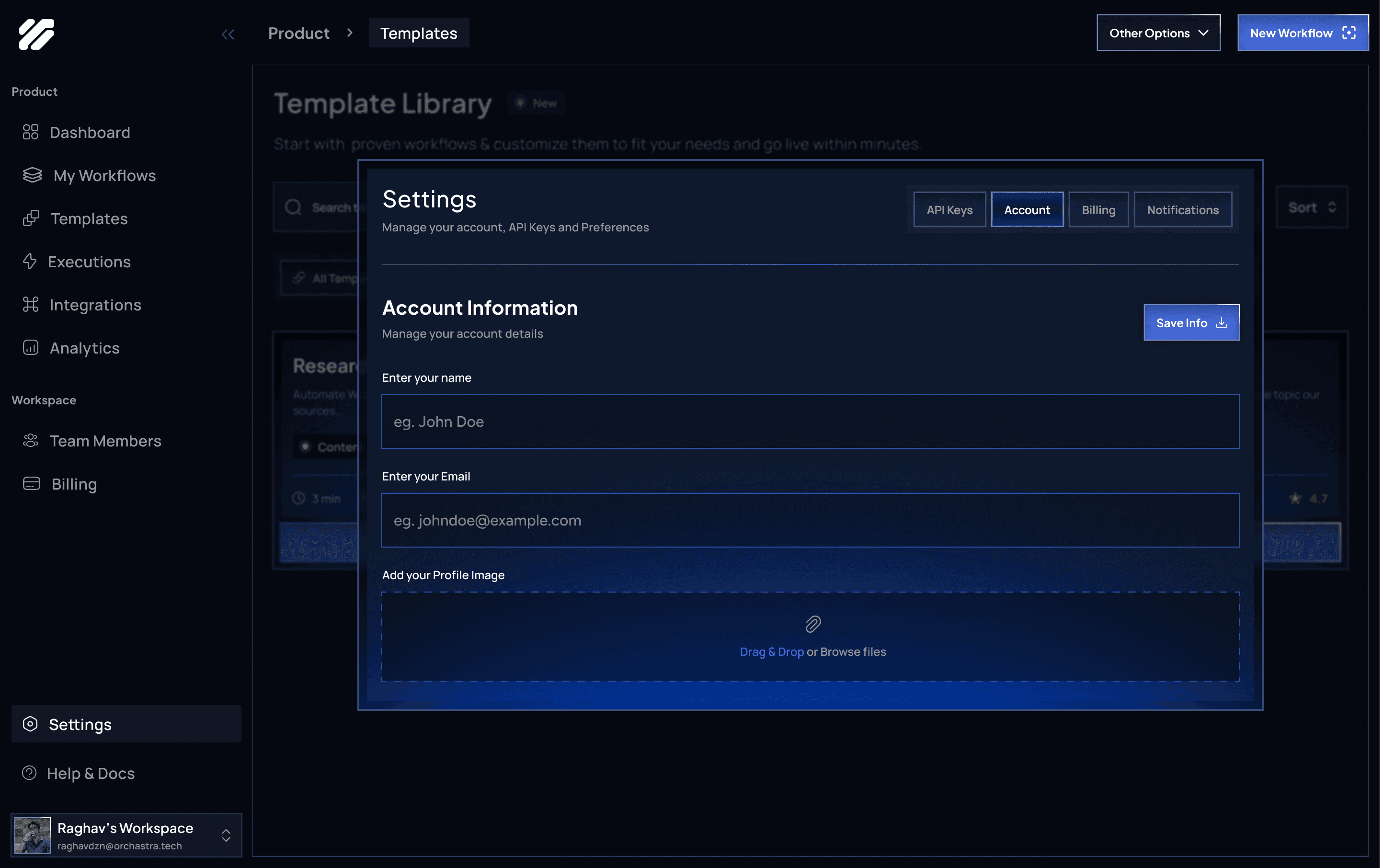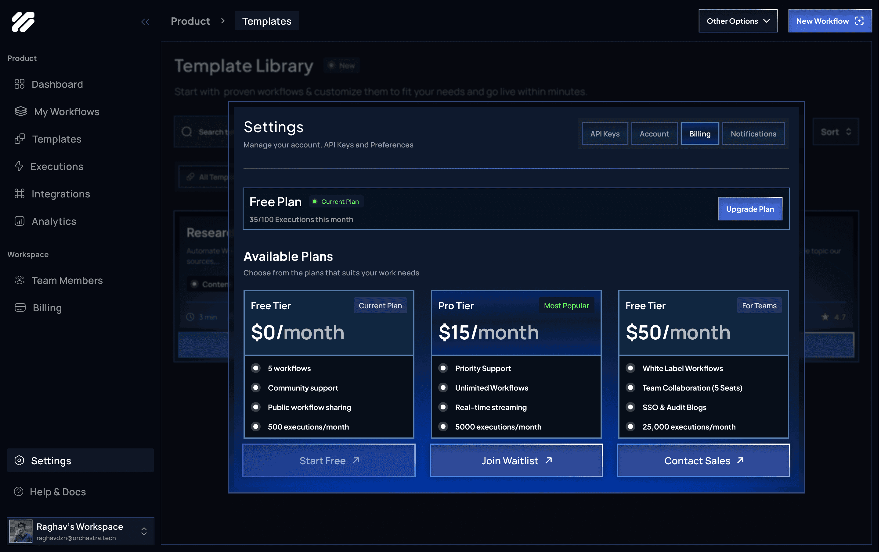 Browse ready-to-use templates and customize them to launch powerful AI workflows in minutes.